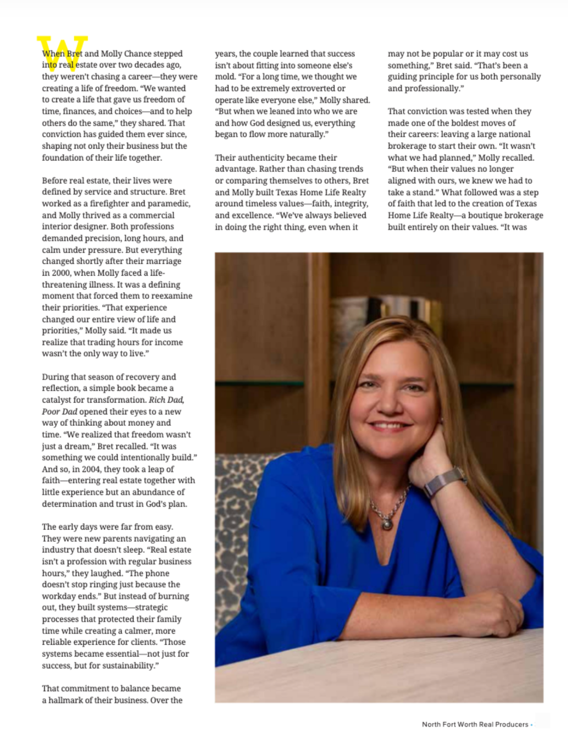 Below are the pages from the DFW Real Producers magazine feature on Texas Home Life Realty. The article highlights our boutique approach to Flower Mound real estate and how those same values guide the way we serve clients throughout the Dallas suburbs.
